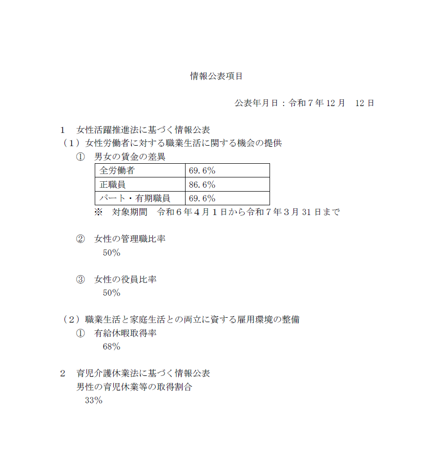 女性活躍推進法に基づく情報公表